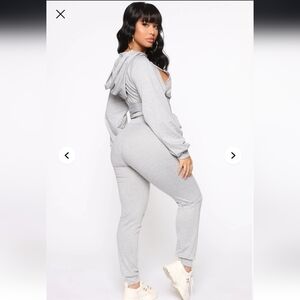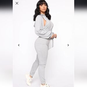 Experience ultimate comfort with this Fashion Nova gray jumpsuit, featuring a relaxed fit and tapered legs for a sleek silhouette. Crafted from a soft cotton blend, this jumpsuit is perfect for casual outings or lounging in style.