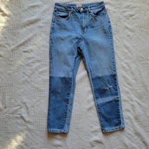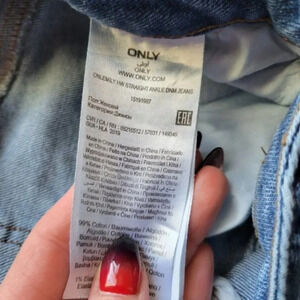 Straight Legged jeans with denim patch design. Jeans sit about ankle and look great with rolled up cuffs.