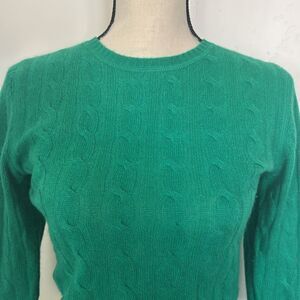 Only mine 2-Ply 100% CASHMERE Green Cable Knit Crew-neck Women's Sweater Size S