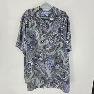 Only necessities womens size 4X purple blue paisley button up short sleeve shirt
