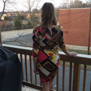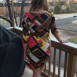 Multi colored dress only worn twice. Purchased from a local boutique. Great for work or can be dressed up for a night on the town!