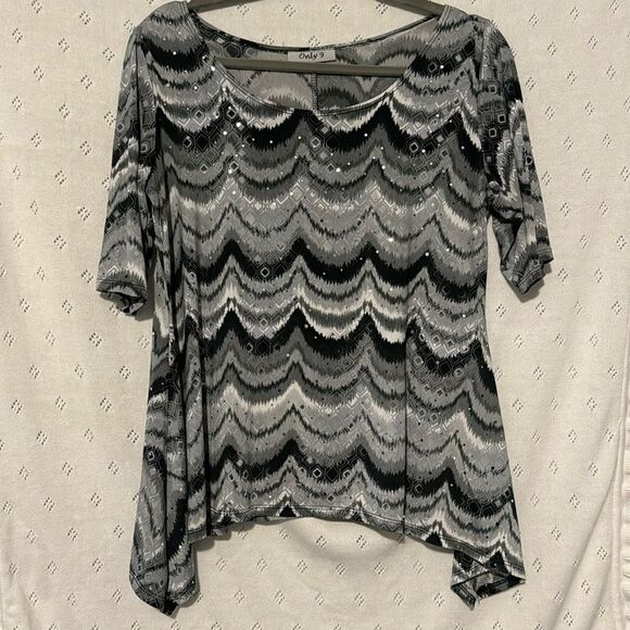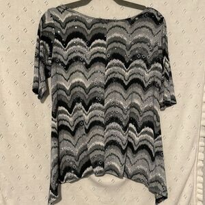 Excellent condition with no flaws black & white sequin top with wavy pattern. No size tag. Approximately 18.5” pit to pit.
