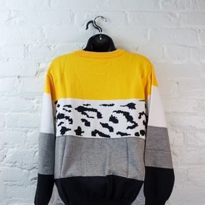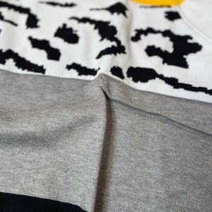 OnlyPuff Women Knitted Sweater Striped Long-Sleeve Leopard Pullover Top