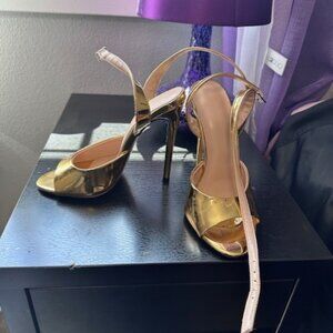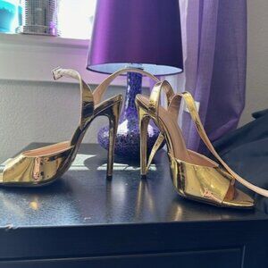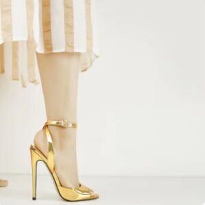 Onlymaker Women's Gold Peep Toe 12CM Thin High Heels Pumps Sandals SZ 37