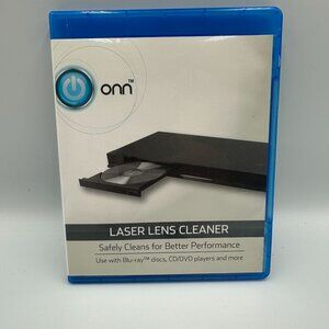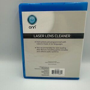 The Onn Laser Lens Cleaner is a versatile cleaning solution for Blu-ray, DVD, and CD players. It includes voice-guided instructions in six languages and enhances playback clarity. New in original packaging, this cleaner ensures consistent and optimal device performance. Not compatible with slot-loading systems.