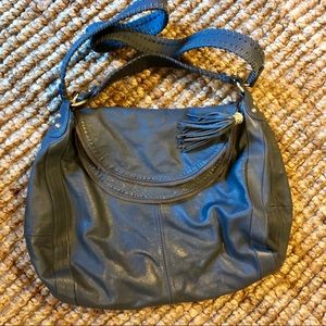 Onna Ehrlich Rachel bag. Excellent condition. zipper flap closure with leather tassel and gold hardware. Inside zipper pocket and two pouches. Shoulder & detachable cross body strap included. 18 wide by 14 tall. Crossbody strap measures approx 18 in and shoulder strap is 7 inches from top of bag to top of strap.