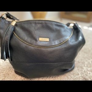 Great black leather handbag with zipper detail by Onna Ehrlich.