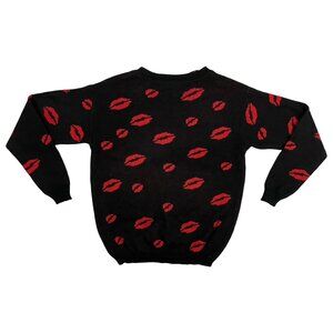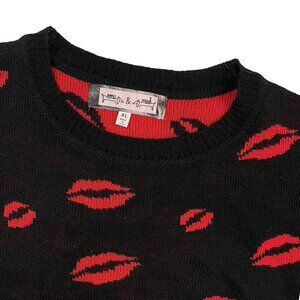 Onna & Maud Sweater Valentine Lips Red Black Women's Size XL NWOT Anthropologie