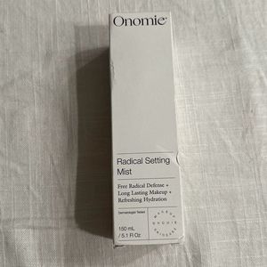 Onomie Radical Setting Mist. A makeup setting spray and multi-benefit skincare product in one, Onomie Radical Setting Mist is filled with plant-based antioxidants to defend against free radicals, pollution and premature aging. It provides an instant boost of hydration, extends the life of your makeup, and leaves skin with a glowy, dewy finish. Use it with or without makeup for an on-the-go skin refresh anytime, anywhere.. Rosewater hydrates and soothes dry skin, tightens pores, and reduces redness and inflammation. Plant-based antioxidants like Algae, Blackberry, Calendula, and Chamomile extracts hydrate, replenish, and protect skin. Moringa Seed Oil is full of nourishing fatty acids and boasts anti-inflammatory and purifying properties that help heal skin. 5.1 fl oz. Mist face after completing makeup or on bare skin. Use throughout the day as desired to refresh makeup and hydrate the complexion.