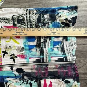 This vibrant Onque Casual full zip jacket features an eye-catching Paris-themed design with the Eiffel Tower, Arc de Triomphe, floral patterns, and brushstroke print. Lightweight and perfect for layering, this women’s size large jacket includes front zip pockets, a stand-up collar, and three-quarter sleeves. A great travel piece or everyday statement jacket for fans of art-inspired clothing, city prints, or French motifs.