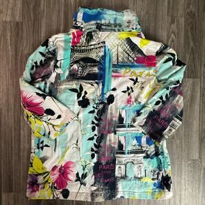 Onque Casual Paris Eiffel Tower Floral Full Zip Jacket Women’s Size Large L