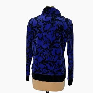 Casual chic, Soft, Distinctive colors, Velvet like fabric, Stylish, Indigo blue, Scroll pattern, Floral motif, Full zip