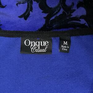 Onque Casual Sweater Jacket Womens Medium Black Purple Velour Full Zip Soft