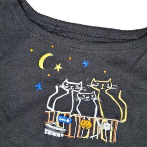 Onque Casuals Black Embroidered beaded Cats Halloween Long Sleeve Shirt Size XL