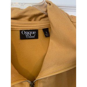 Onque Casuals Brown 3/4 Sleeve Collared Zip Up Sweater Large