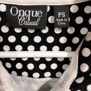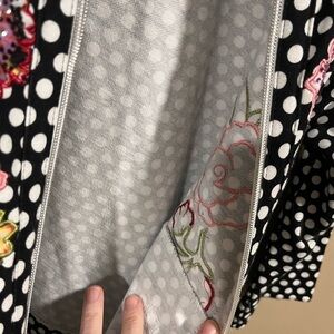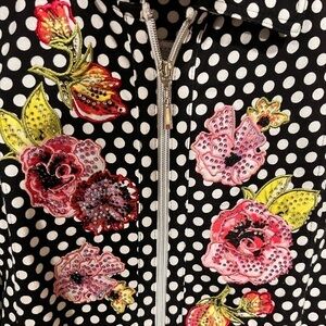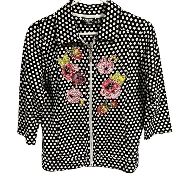 Onque Casuals Black Polka Dot w/ Sequin Floral Applicate Zipper Cardigan Size PS