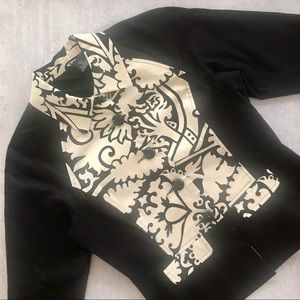 Black w/Cream Floral patterned panel & trim