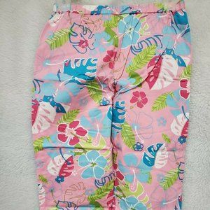 Onque Casuals Pink Blue White Green Floral Capri Pants Size M