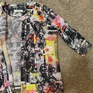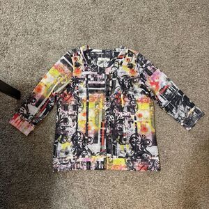 Elevate your wardrobe with the Onque Casuals multicolored quarter sleeve top with a hook and eye clasp. This piece combines a striking color palette with a tailored fit, perfect for adding a pop of color to any ensemble. Crafted for comfort and style, it's an ideal choice for both casual and formal occasions.
