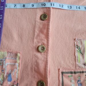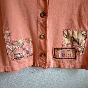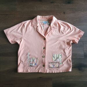 Onque Casuals Shirt Womens M Button Down Orange Flowers Vintage Cotton