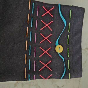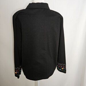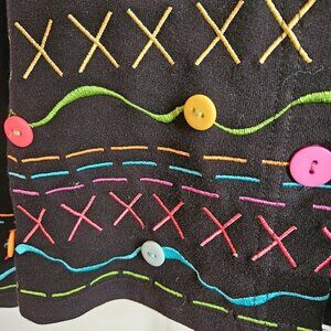 Onque Casuals Size XL Black Jacket Colorful Embroidery Knit Blazer Artsy Boho