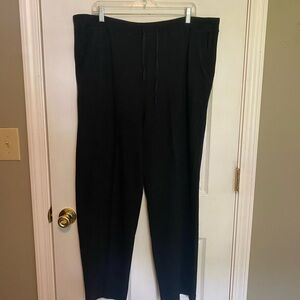 Stylish 2 pc set black top & pants by Onque Casuals. Sz L. Made from 100% cotton. Cat design. Top buttons down front with cat printed buttons. Pockets on both sides. Pants pull on with draw string waist. Pockets on both sides. Easy to wear, comfy, cozy. Ideal for versatile wear.