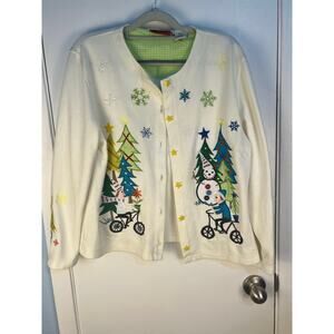 Onque Casuals Ugly Christmas Cardigan Sweater Medium Embroidered Snowman