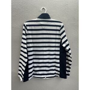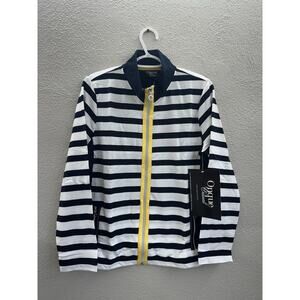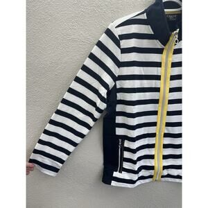Onque Casuals Womens Jacket Size Large Navy Striped Long Sleeve Zip Up NWTs