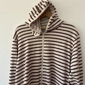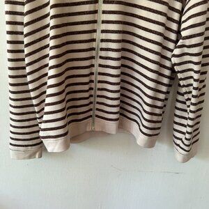 Onque Casuals Zip Front Hoodie Womens Large Cream Brown Striped Cozy Minimalist