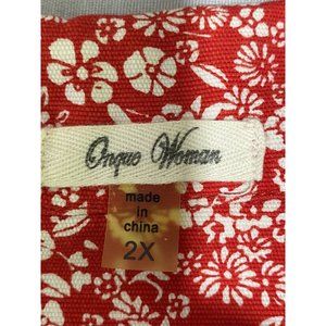 Onque Woman Button Down Jacket Red White Floral Pattern Top Size 2x
