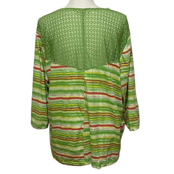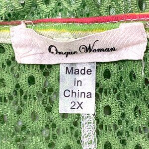 Onque Woman Open Front Wrap Jacket 2X Green Boho Festival Lace Tropical Striped