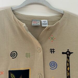 Onque giraffe cardigan. Like new condition. Embroidered, beaded. Miss Frizzle!