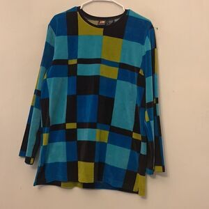 Onque Casuals blue large checked long sleeve tunic Size M NWT