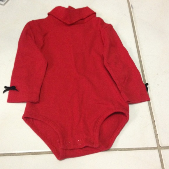 Cute red long sleeved onesie. Perfect for Christmas time. Has a turtleneck and cute black bows on the sleeves. Never used. Nwot.