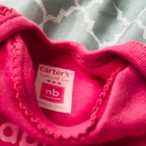 1 pink alphabet onsie and 1 green and blue onsie with a bird. Size newborn. Barely worn.