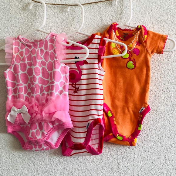 3 Onsies. One has a stain. It is shown in the photo. Size newborn