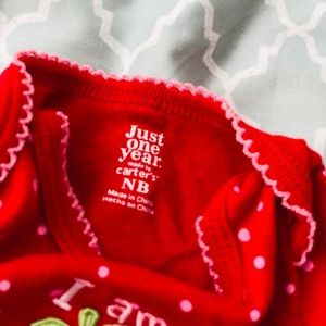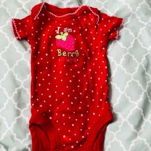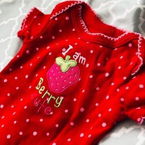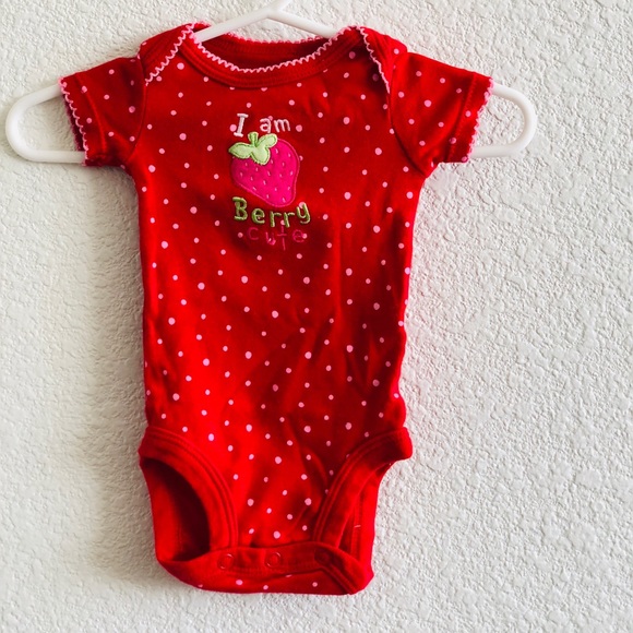 Red polka dot “I’m berry cute” onsie. Barely used. Size newborn.