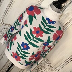 OntWelfth Double Knit Long Sleeve Turtleneck Daisy Flower Graphic Sweater Size M