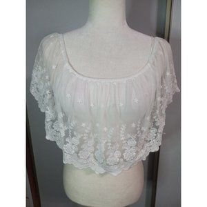 Ontheland Small White Lace Lined Crop Boho Sexy Feminine Top