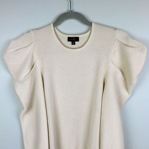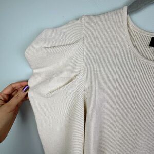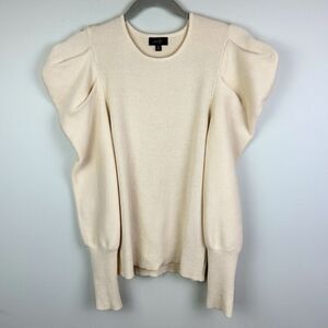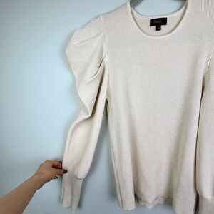 Ontwelfth Anthropologie Puff Sleeve Rib Knit Sweater Creckneck Top Cream sz L