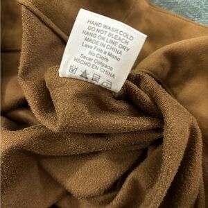 Mid-rise in an ultra soft suede look fabric. Flared legs and lace up front. Has some stretch