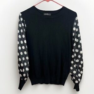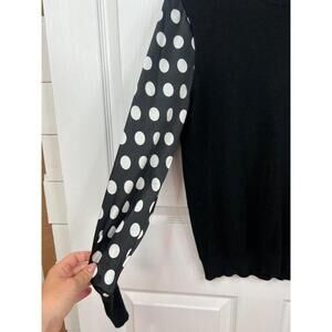 Ontwelfth Sweater Womens Size Medium Black Crew Neck Polka Dot Sleeves Trendy