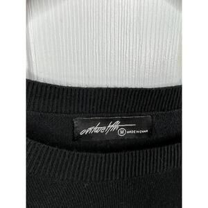 Ontuetnth Sweater Womens Size Medium Black Crew Neck Polka Dot Sleeves Trendy