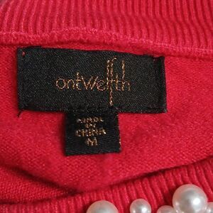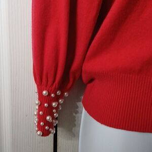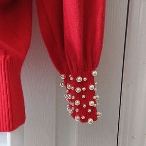 Ontwelfth red holiday with faux pearl neckline and cuffs Sz M EUC holiday party