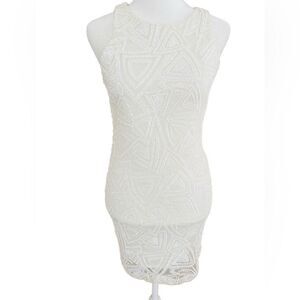 Ontwelfth white sequin sleeveless bodycon style dress size S. Back zipper, Racerback style. Lined, 100% polyester. Sequins on a mesh style overlay. Perfect for a wedding rehearsal or bachelorette party!