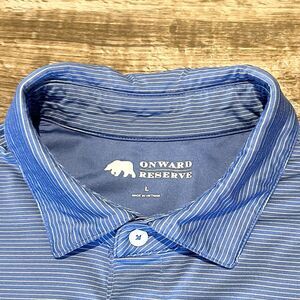 Onward Reserve Performance Polo Shirt Mens Size L Blue Striped Golf Stretch
