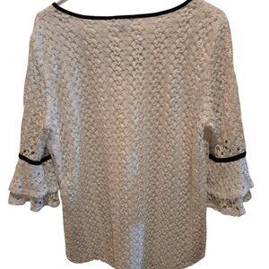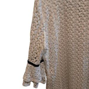 Onyx Apparel Blouse Shirt Top Crochet Cream and Black Bell Sleeve Size L