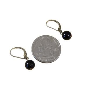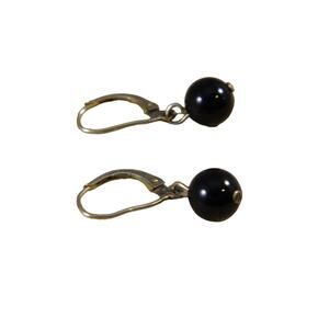 These are some elegant, simple black onyx pearl earrings on gold plated sterling silver settings. The settings are 10k gold over sterling, often called vermeil. The stones are either onyx or jet in round "pearl" shapes. These are great for everyday wear or for a little something chic with your little black dress!