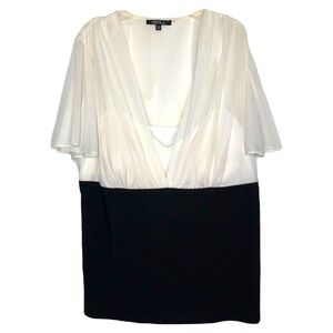 Onyx NITE Black & White Sweetheart Top w Sheer Overlay & Flutter Sleeves Size 1X