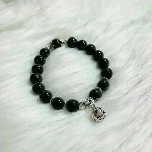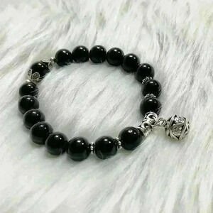 Onyx Natural Gemstone Bracelets with Flower Charm